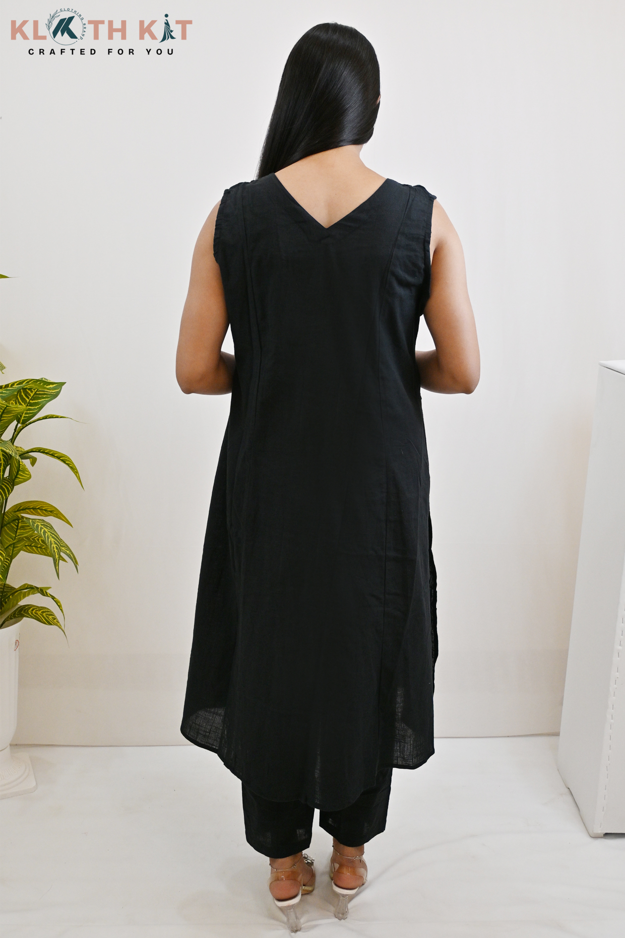 Kloth Kit Sleeveless Solid Black Co Ord Set