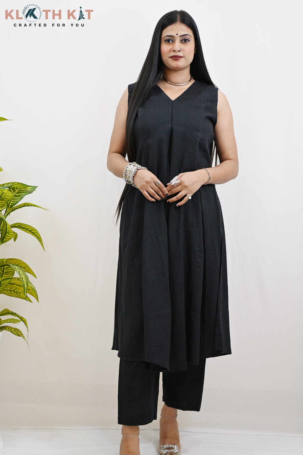 The Sleeveless Black Co-ord Set for Women is the definition of confident simplicity. No fuss, just flawless style.